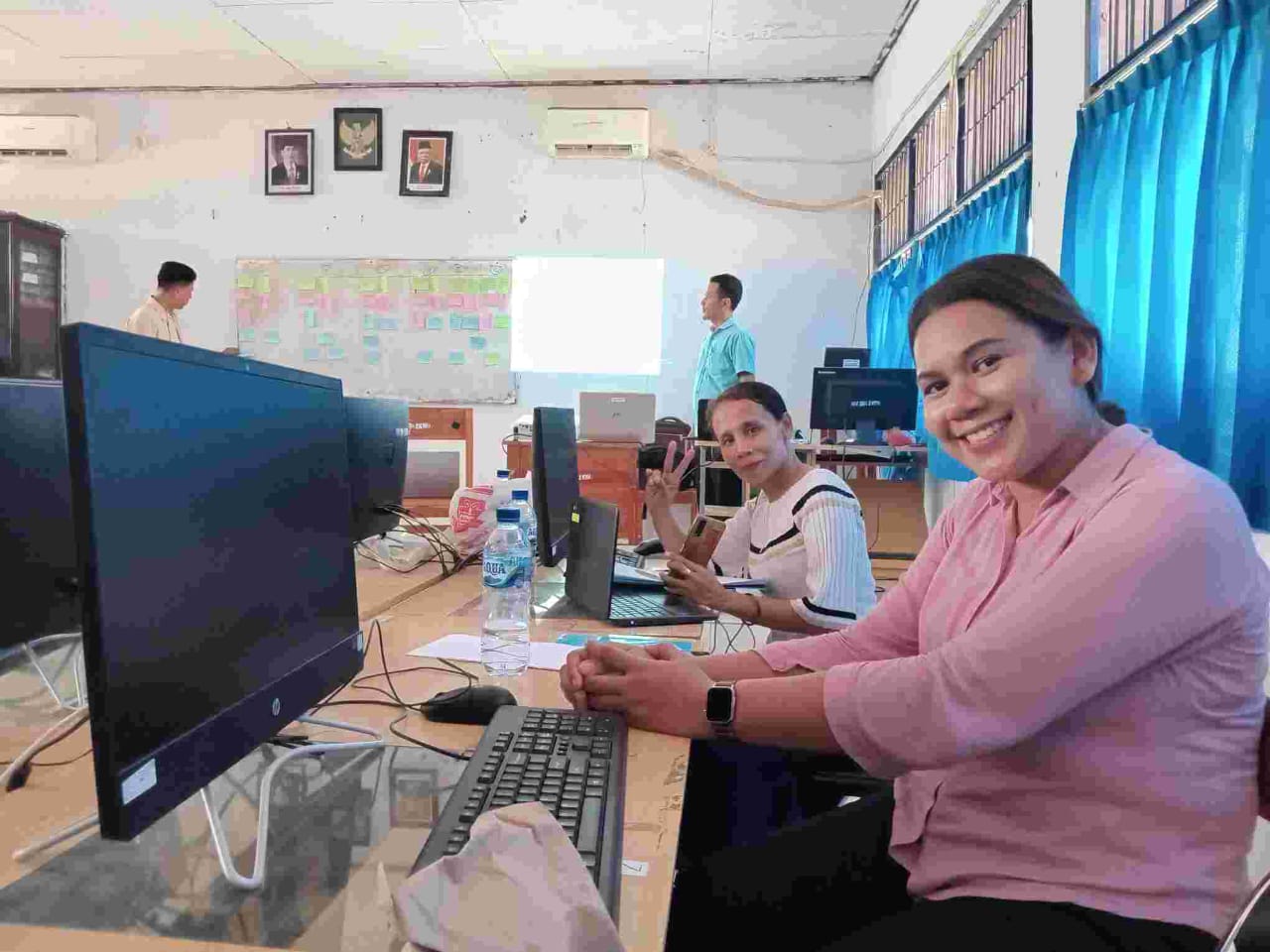 Ibu Lenaci Giri (berbaju pink) dan Ibu Ervina Panu Weo (baju putih), adalah Pengajar Praktik yang mendampingi 2 dari 4 CGP di SMAN 2 Kupang Timur.