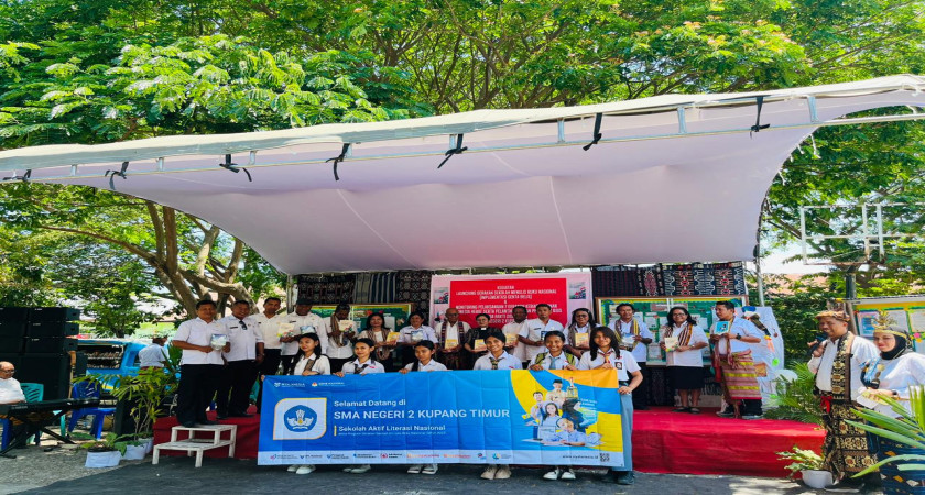 KUPANG TIMUR (Koran) – SMA Negeri 2 Kupang Timur pada tanggal 23/10/2025, ,menggelar serangkaian kegiatan akbar yang dipusatkan di lingkungan sekolah tepatnya di lapangan utama sekolahnya yang di apit pohon hijau, terlihat tenda lengkung berhias dan di padati kurang lebih 600an hadirin dan undangan. Kegiatannya meliputi Launching Kegiatan Menulis Buku Nasional (Implementasi Genta Belis), Monitoring Gerakan 7 Kebiasaan Anak Indonesia Hebat, dan Pelantikan OSIS periode 2025/2026. Acara yang dimulai sekitar pukul 11.00 WITA ini dihadiri oleh berbagai tokoh penting dan berlangsung meriah penuh semangat.
